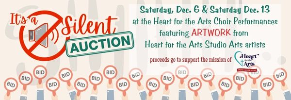 Plan to come looking for your next Christmas art piece or gift! All three shows will also include a Silent Auction with art from our Heart for the Arts Studio Arts artists! All proceeds will go to support our Heart for the Arts organization.